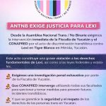 3 de abril de 2026 La Asamblea Nacional Trans No Binarie (ANTNB), ante los hechos denunciados públicamente por la mujer trans Lexi respecto de un presunto acto de discriminación, exclusión