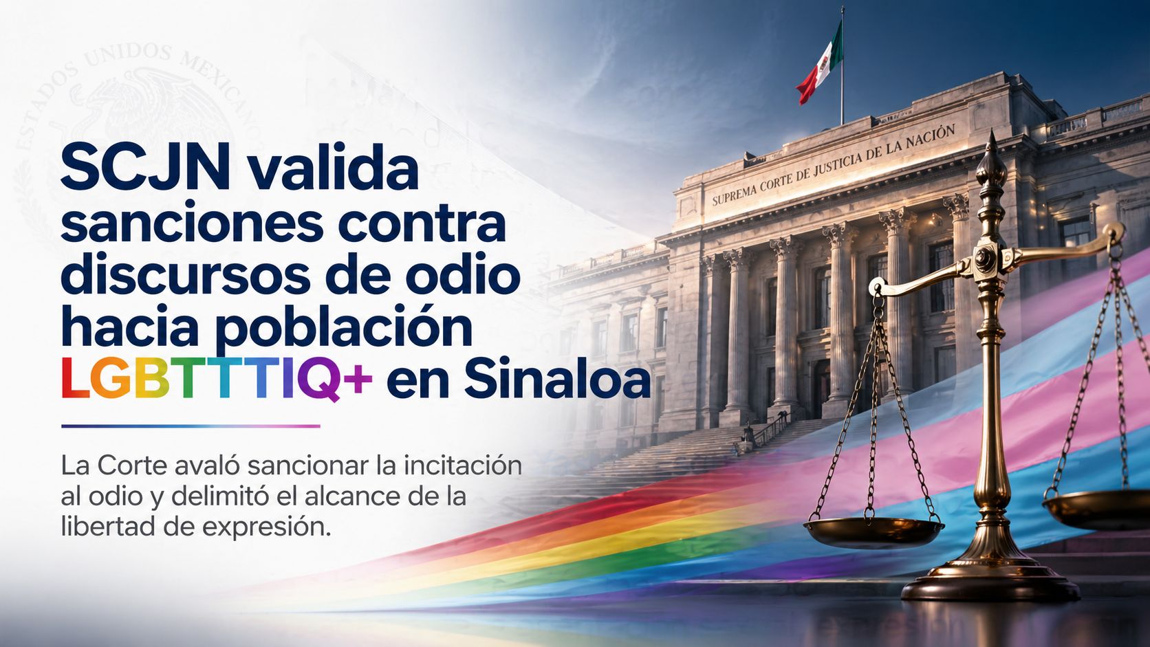 La Suprema Corte de Justicia de la Nación validó parcialmente una disposición del Código Penal de Sinaloa que castiga los discursos de odio dirigidos contra la población LGBTTTIQ+, al considerar que el Estado puede sancionar conductas que provoquen o inciten al odio, la violencia o la discriminación por motivos de orientación sexual, identidad o expresión de género.